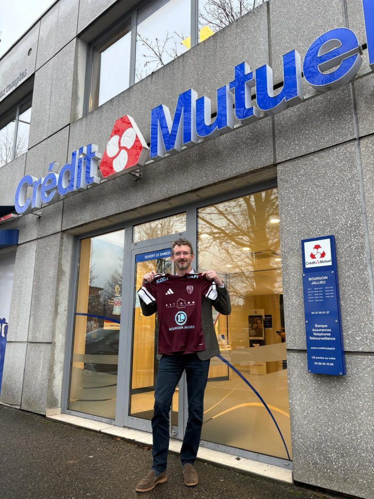 Aujourd’hui, on vous emmène à la rencontre du Crédit Mutuel de Bourgoin-Jallieu. Une agence ancrée localement, spécialisée dans l’accompagnement global de ses clients : financement, épargne, assurance et services du quotidien, avec une forte culture de proximité. Pouvez-vous vous présenter et présenter votre entreprise ?Je suis Olivier Knopf, directeur du Crédit Mutuel de Bourgoin-Jallieu. Notre agence regroupe 18 collaborateurs au service de 11 000 clients. Nous accompagnons une clientèle variée : particuliers, professionnels, agriculteurs et associations.Notre mission est de les soutenir dans l’ensemble de leurs projets : financement, épargne, assurance des biens et des personnes, ainsi que des services complémentaires comme la téléphonie ou l’accès à internet. De quoi êtes-vous le plus fier dans votre entreprise ?Je dirais que c’est la proximité que nous entretenons avec nos clients, probablement plus que dans d’autres banques. Cette proximité repose sur notre modèle coopératif : notre capital est détenu par nos clients, appelés sociétaires. Certains d’entre eux sont élus et participent bénévolement aux conseils d’administration et de surveillance.Par ailleurs, nos conseillers ne sont pas commissionnés et gèrent des portefeuilles dédiés, ce qui renforce la relation de confiance. Cette organisation nous permet également d’être très réactifs : plus de 90 % des décisions de crédit sont prises localement, au plus près du terrain. Quelles valeurs partagez-vous avec le club ?Le Crédit Mutuel est l’une des premières banques à s’être engagée comme entreprise à mission, avec des valeurs fortes : démocratie, solidarité, engagement sociétal et environnemental. Nous retrouvons ces valeurs au sein du club de football de Bourgoin, notamment à travers l’inclusion sociale et l’esprit collectif. Notre ancrage local nous pousse naturellement à soutenir les associations, qui jouent un rôle essentiel dans la cohésion sociale et l’animation du territoire. Si votre entreprise était un poste sur un terrain de football, lequel serait-ce ?Je nous verrais au milieu de terrain. Notre rôle est de distribuer les bonnes solutions, comme un milieu de terrain organise et distribue le jeu. Chaque client a des besoins spécifiques, tout comme chaque joueur sur le terrain. À nous de nous adapter en permanence pour proposer le bon produit ou le bon service, au bon moment, en fonction de chaque situation.